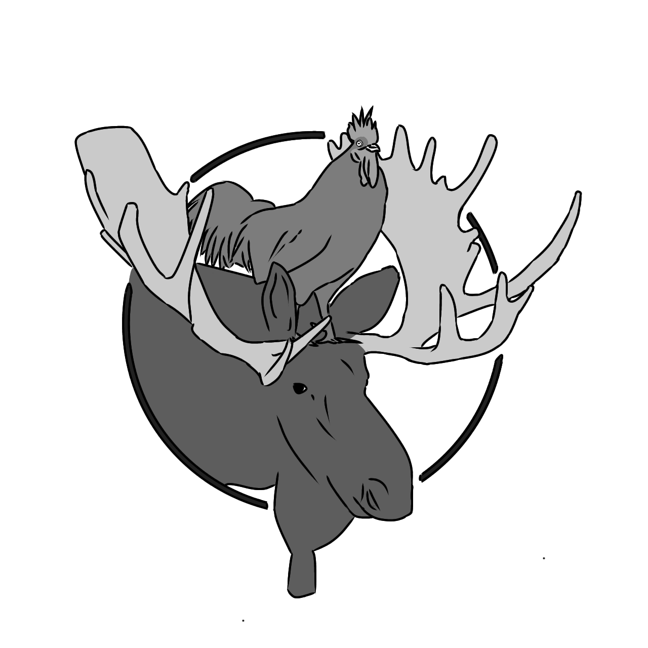 Afin de publier en ligne une revue, crée lors d'un Erasmus entre la France et la Norvège, il m'a été présenté l'idée de realisé un logotype. Prenant cette oportunité, j'ai decidé de représenter les 2 animaux symboliques des pays, le coq et l'elan, en un seul et même logo, et faisant un petit clin d'oeil au conte des Musiciens de Bremes.
